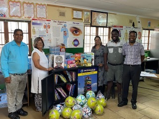 Our second visit was to Thornville Primary School, nominated by Mike from Thornville Service Station. We received a similarly warm welcome from the principal, Mr Ranesh Chowthee, his staff, and the pupils. As the school does not have a library, the children were particularly thrilled to receive the books. Mr Chowthee explained that the school lacks the funds to purchase fiction or non-fiction books, making these donations a valuable asset for the children. They expressed their deep gratitude, and we look forward to returning soon to see the impact these books have had on the children’s reading journey.