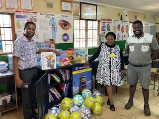 The third school we visited was nominated by James Construction from Estcourt to be the beneficiaries of the stunning library trolley, books, balls and other donations for their school On the 26th January 2022, we were taken to a wonderful school in Estcourt; Phasiwe Primary School which is located in the Emqedanda Area, Estcourt. Mr Kheswa (Principal) his staff, and the Chairman of the School Governing Body were delighted to meet us and thanked PTA Petroleum, Amanda & her dad from James Construction for the wonderful gesture in nominating their school for the donation.