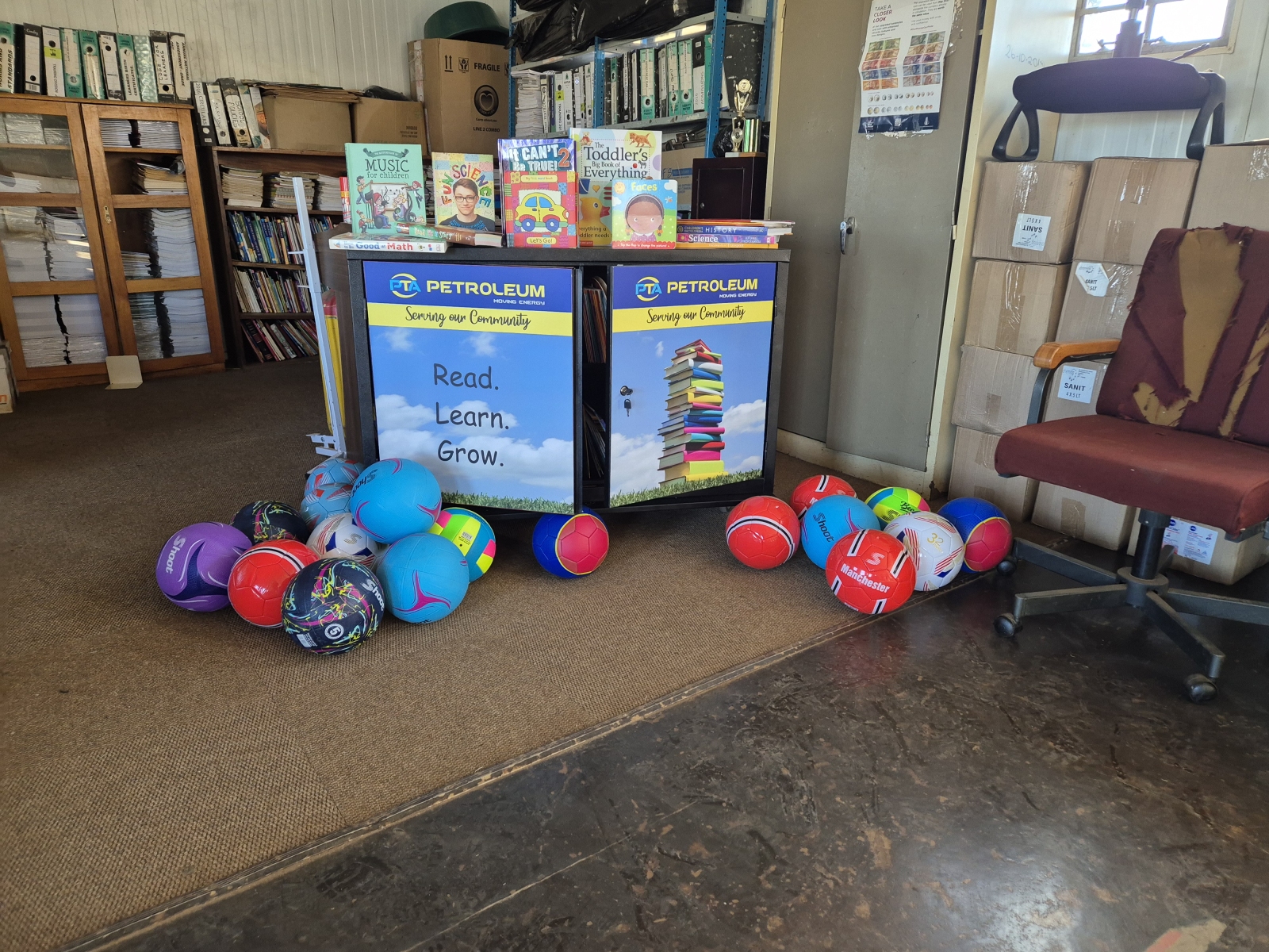 PTA Petroleum is extremely passionate about education – educating our future generations and giving back to the local communities is extremely important to us. We like to partner with our customers, where we request that they nominate a school that they feel would benefit from a donation of a mini library on wheels – a mobile library that can be moved from classroom to classroom with a collection of stunning educational books. Once the schools have been notified that they have been nominated, we pass on the school contact details onto the supplier of the books who then contacts the schools and finds out information about the age groups, grades offered and what books would suit their needs as a school.