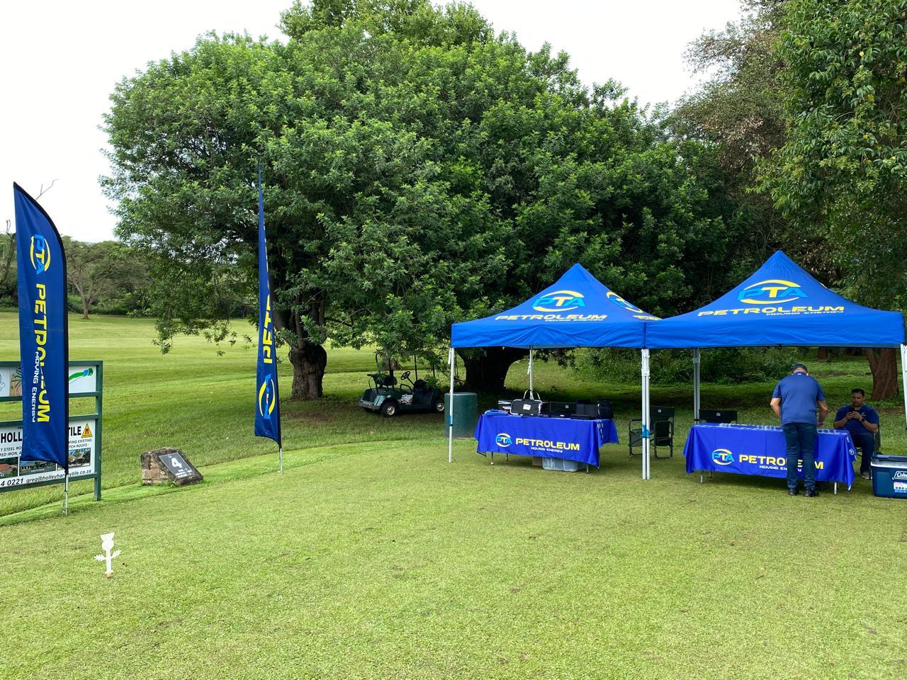 As part of our sponsorship, PTA Petroleum had a strong presence at the registration area, where our banners, backdrops, pull-up banners, and flags were prominently displayed at the clubhouse. Our team ensured that all participating golfers were well taken care of by providing refreshing cold drinks and a variety of snacks, including chips, biltong, fruit, and sweets — perfect for keeping energy levels up during what turned out to be a very hot day.
