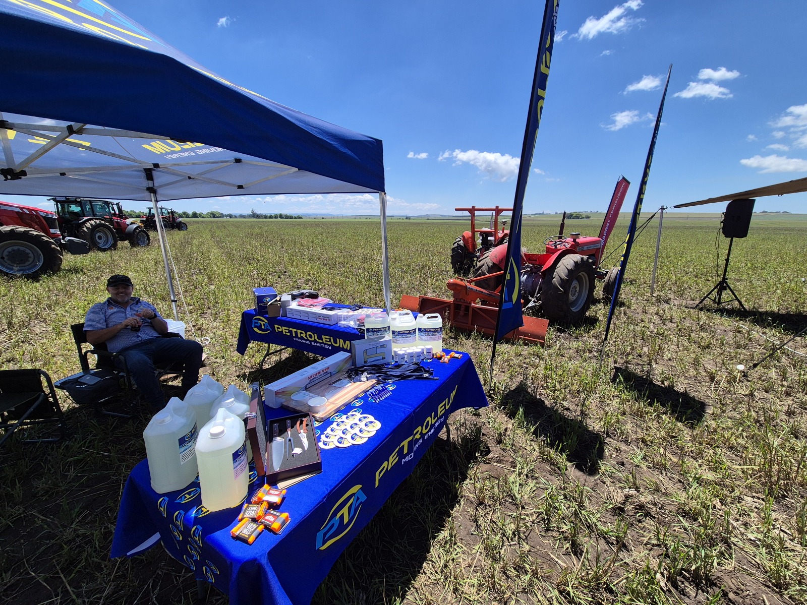 On October 24, 2024, PTA Petroleum had the exciting opportunity to exhibit for the first time at The Massey Ferguson Experience Day, held at Botfield Farm in Noodsberg. This annual event is a must-attend for those interested in the latest technology and innovations in agriculture, featuring demonstrations from Massey Ferguson and other top implement manufacturers, including Falcon, Rovic Leers, and Radium.